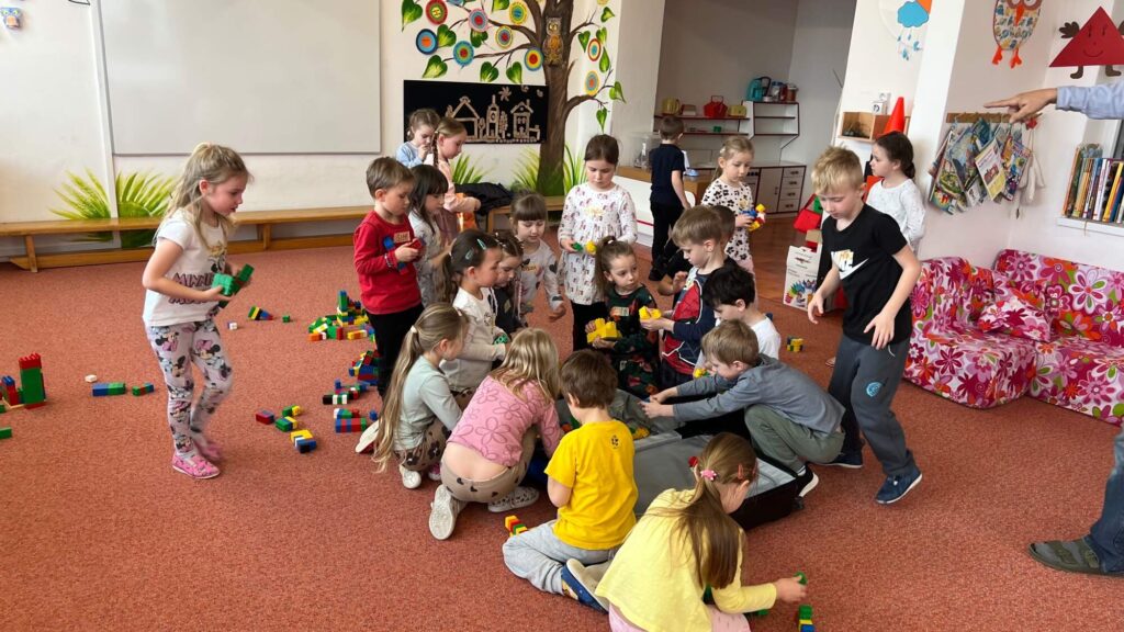 Během dopoledního programu se děti proměnily v malé architekty. Seznámily se se základními principy stavitelství, vyzkoušely si práci s jednoduchými stavebními prvky a učily se, jak správně navrhnout a postavit různé konstrukce. Celá aktivita byla vedena interaktivně, takže si děti mohly vše samy osahat a vyzkoušet.