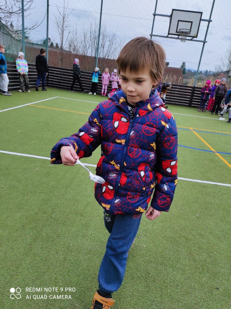 Abychom si procvičili i hlavičky, čekalo na děti pásmo zábavných jarních úkolů a hádanek. Děti luštily, poznávaly první jarní květiny a odpovídaly na záludné otázky spojené s příchodem jara a Velikonocemi. Za své znalosti a šikovnost si všichni zasloužili velkou pochvalu. Jarní sportovní aktivity pak pokračovaly i v družině odpoledne.